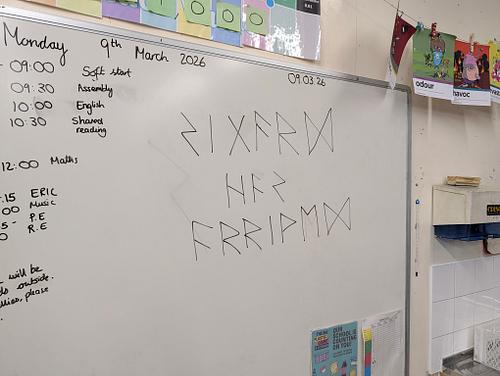 Year 4 arrived today to find their classroom in total disarray! After finding giant footprints and translating some ancient Viking runes on the whiteboard, we realised a visitor named Sigurd has officially arrived.
